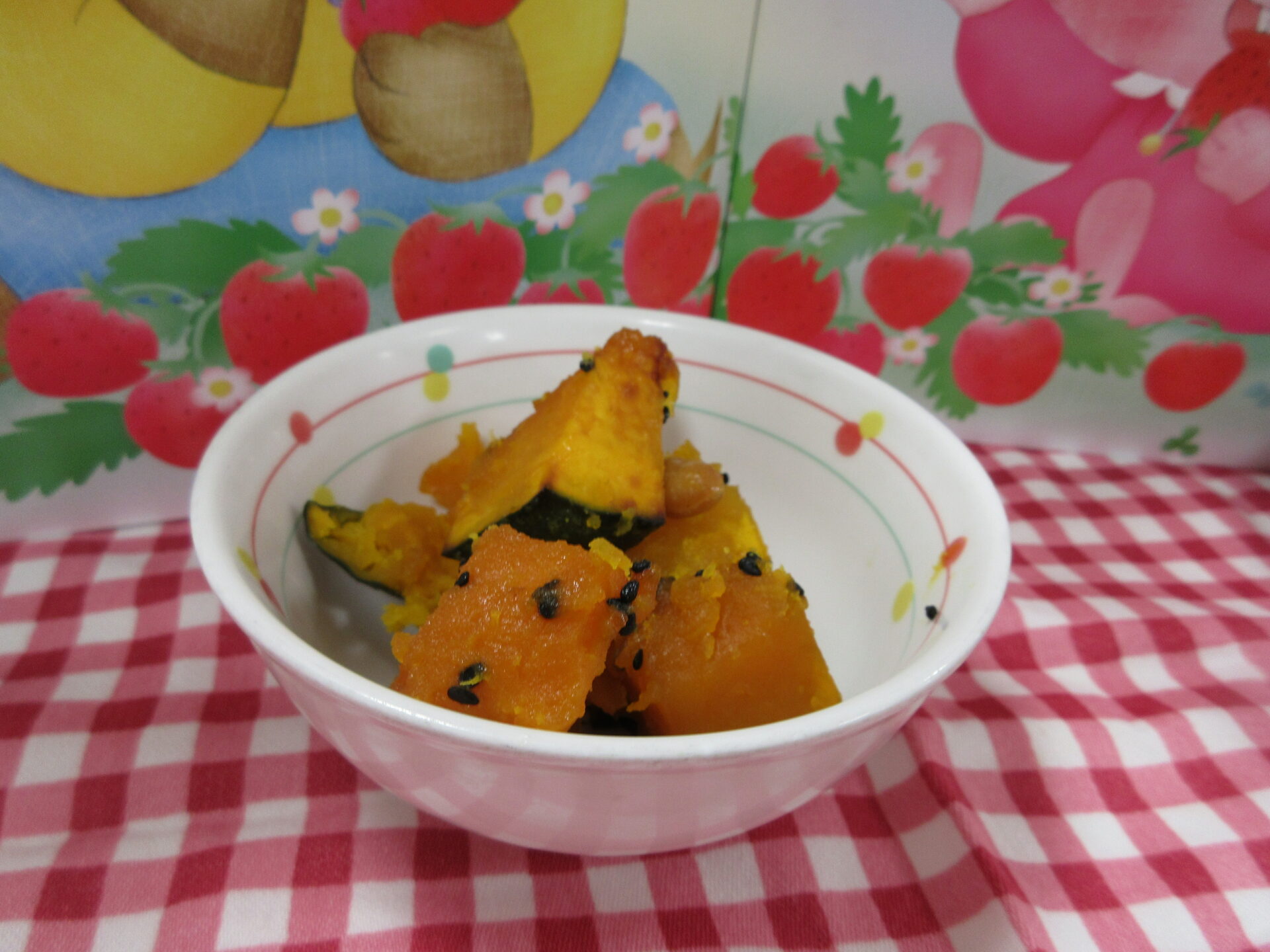油あげが美味しさの秘訣、美味しい🦊きつねうどんをたくさん食べました。かぼちゃと大豆の大学炒めは甘いデザートのようでした。