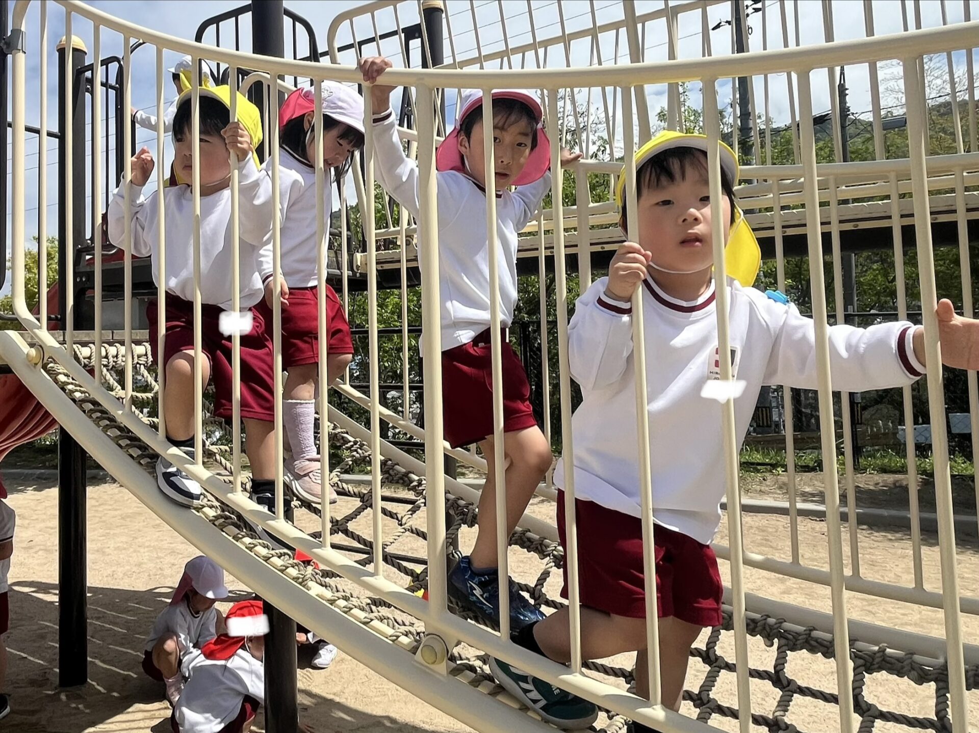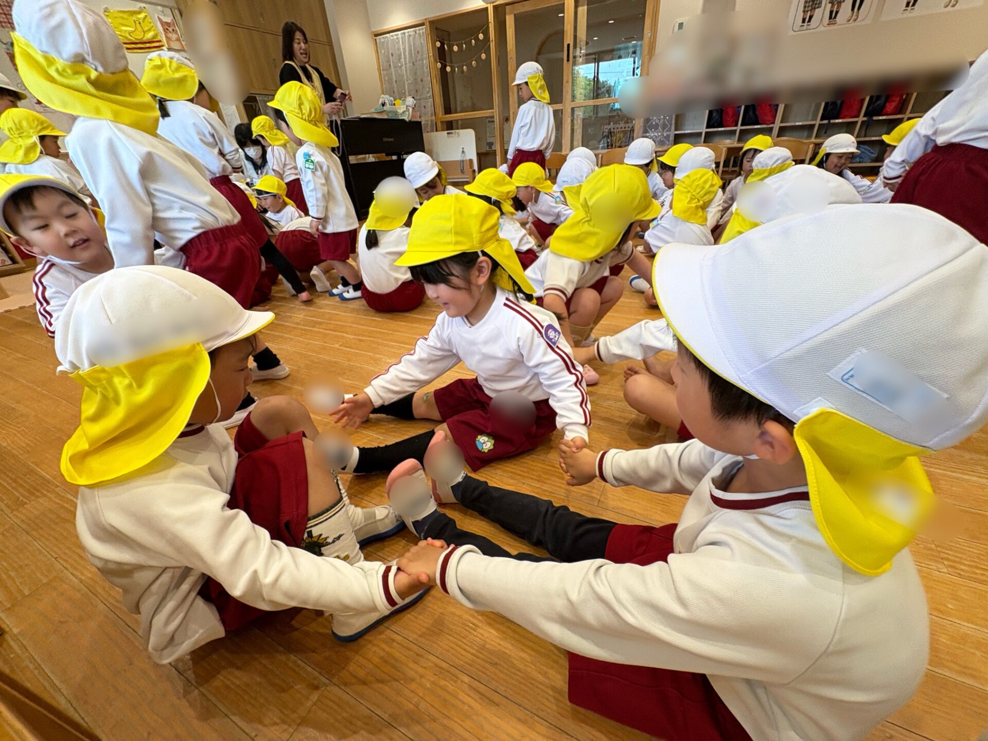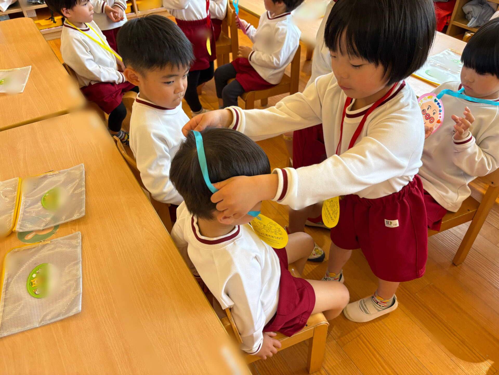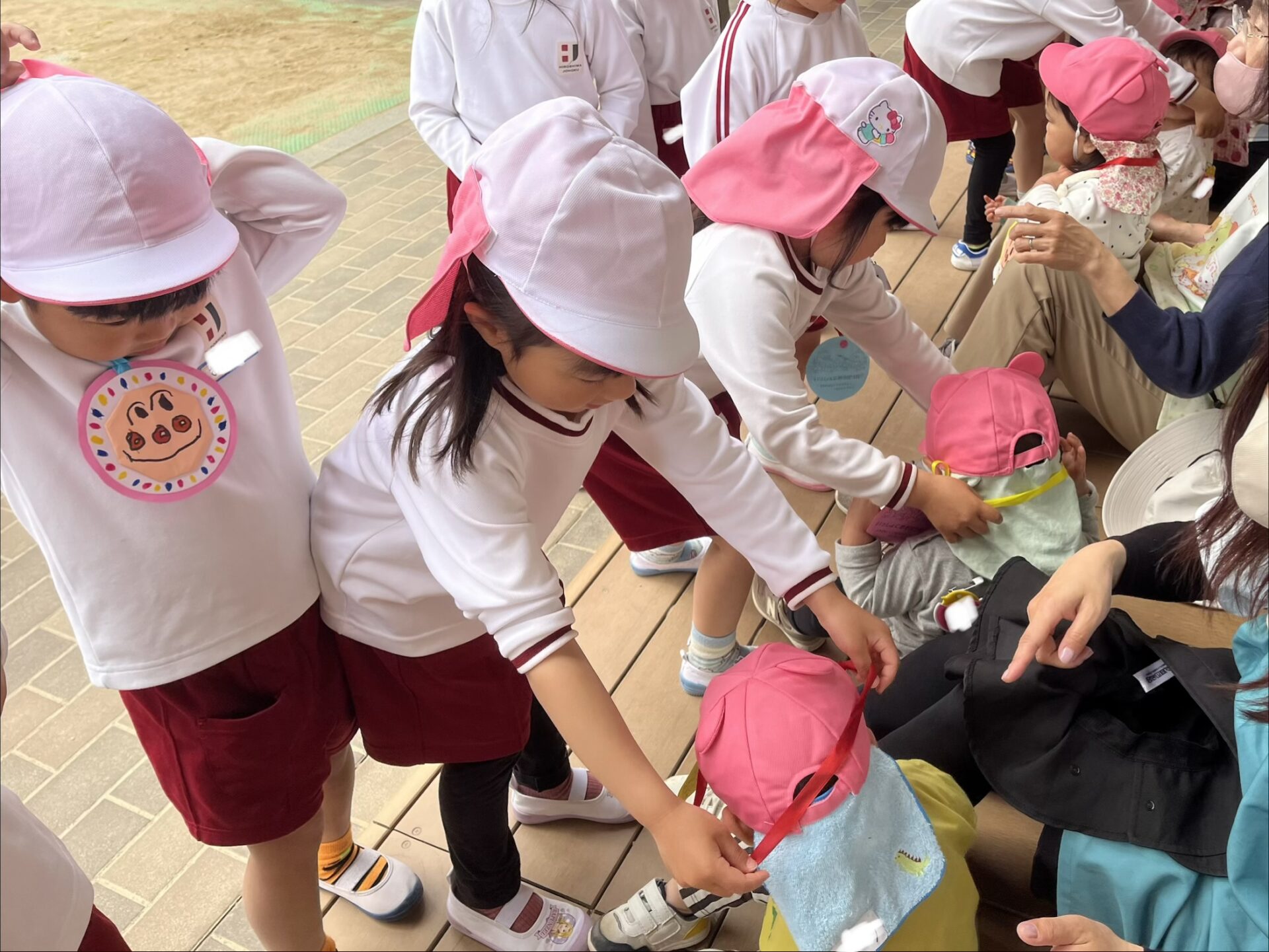 20日は年長組が年少組さんのところへ・・・。一緒に歌を歌ったり、触れ合い遊びをしたりして仲を深めました✨歓迎会の最後は「たくさん一緒に遊ぼうね🎵」と声をかけ、アンパンマンのメダルをプレゼントしました💖園庭に出ると年長児が優しく年少児を誘って遊ぶ姿も見られましたよ😊