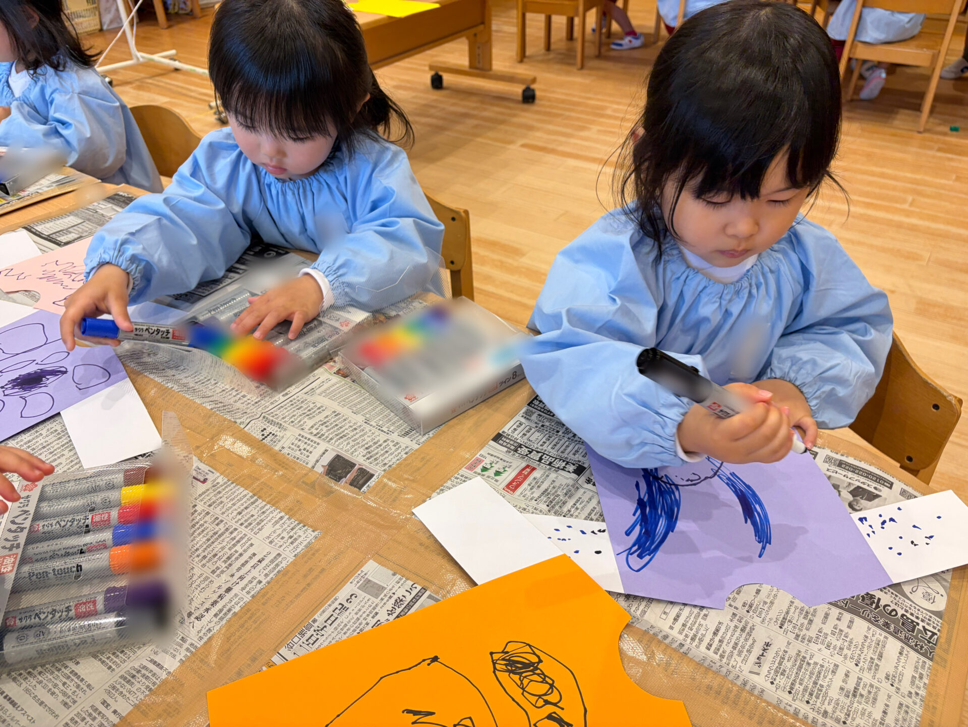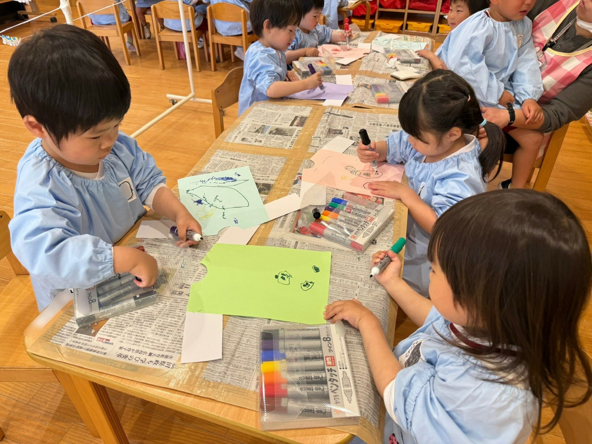自分の好きな色のお洋服を選び、マジックで模様を描いて、オリジナルのお洋服作りをしました👕✨カラフルに色を使いながら、それぞれ素敵なお洋服が完成しました😊