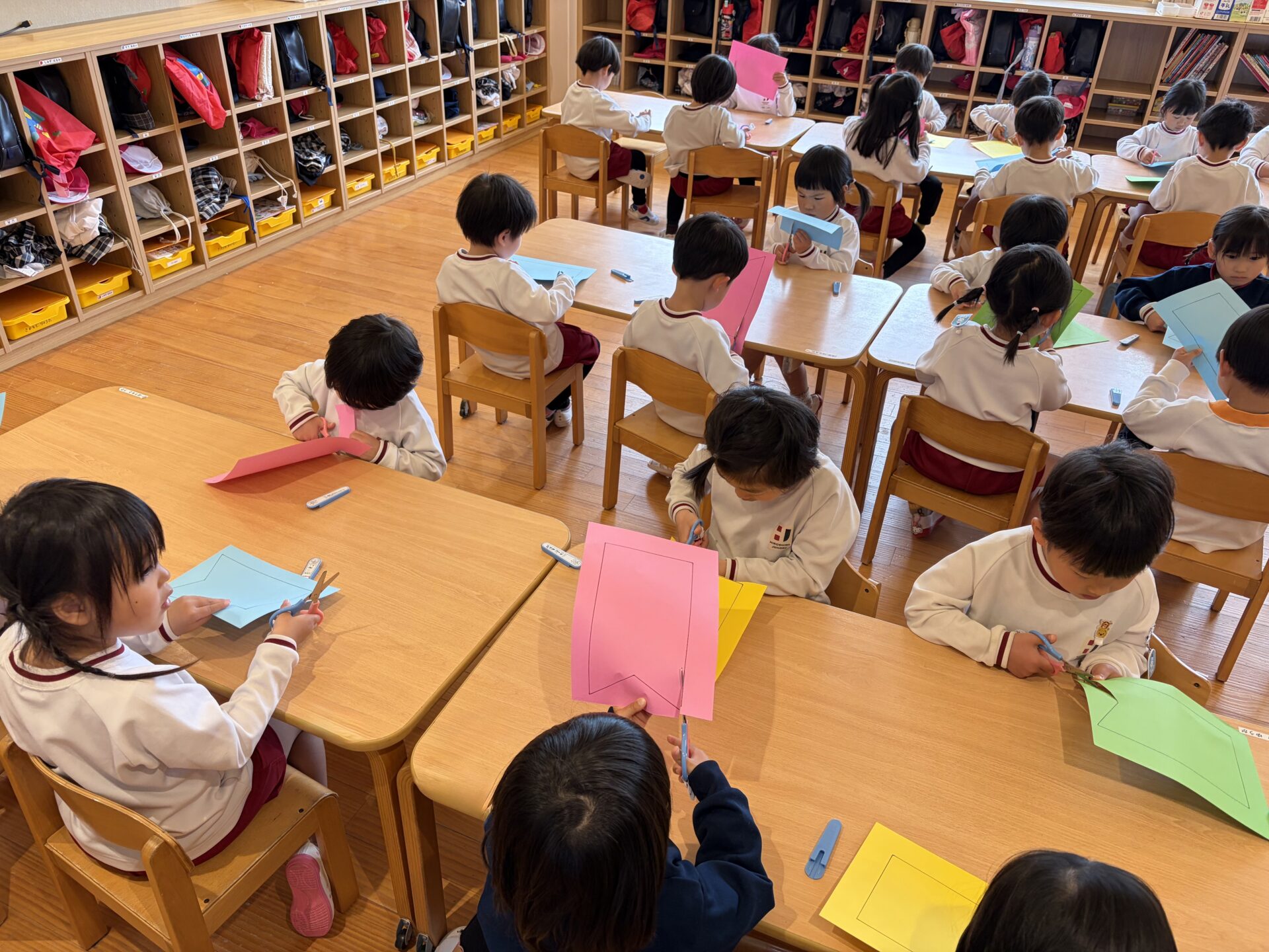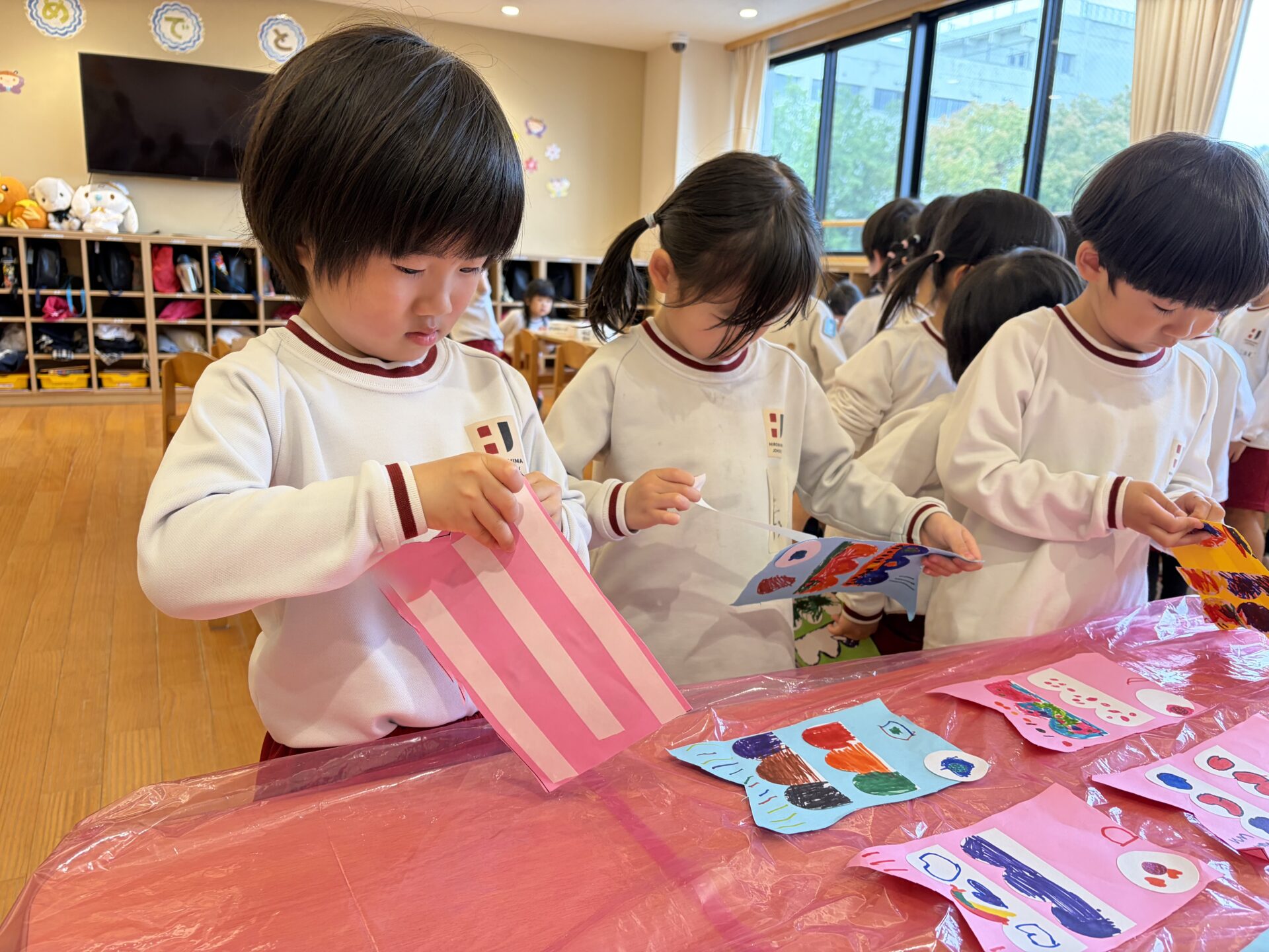 最後にのりで貼り合わせ、それぞれ個性あふれるこいのぼりが完成しました🎏