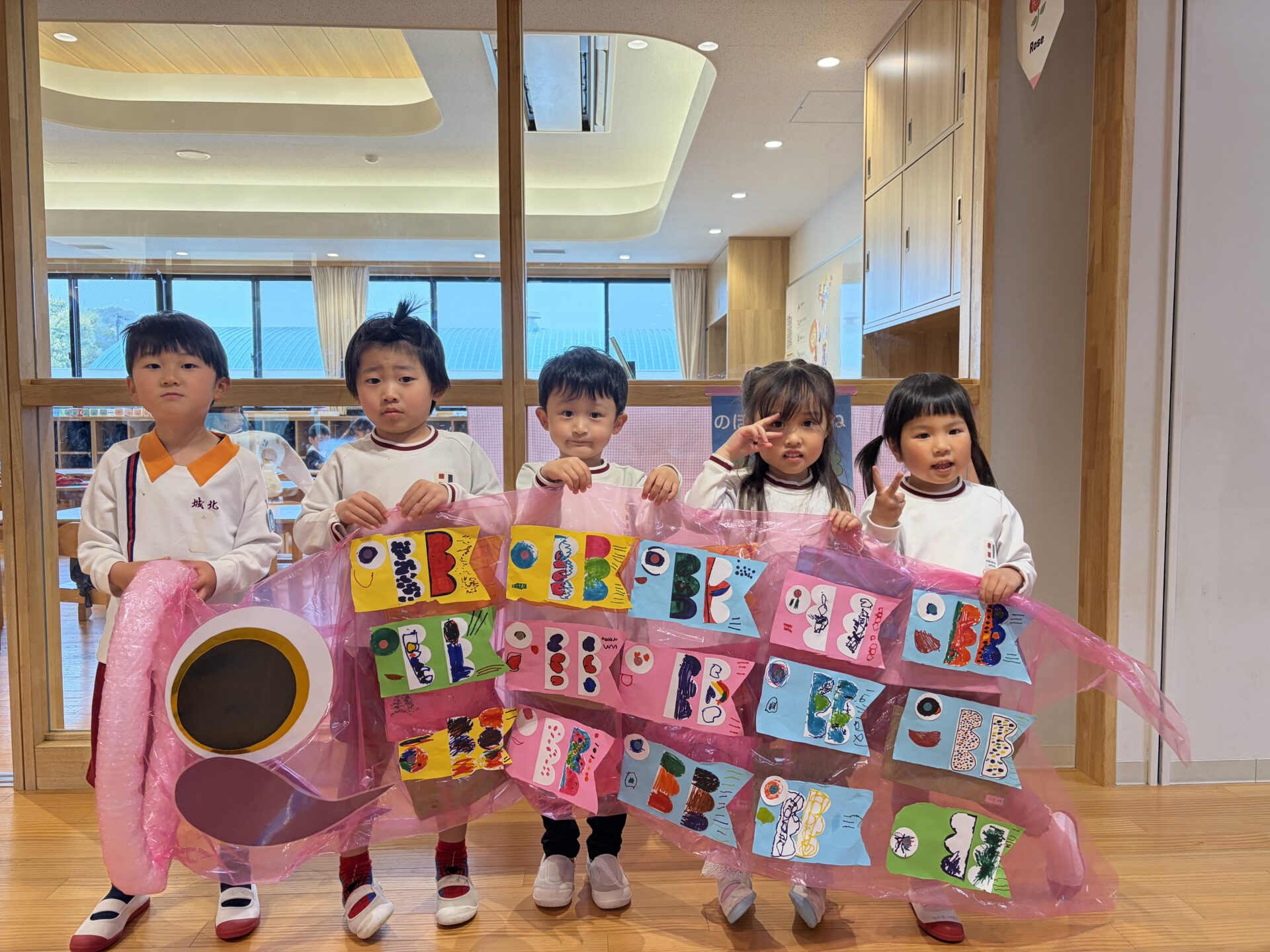 クラスの大きなこいのぼりにのせて✨「元気に泳いでね!」とみんな嬉しそうでした✨