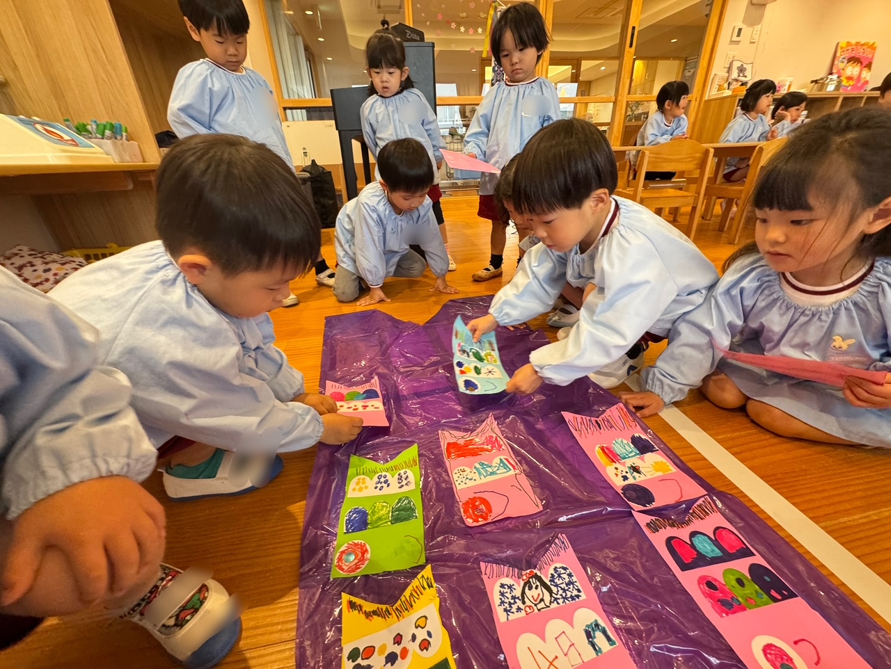 最後にのりで貼り合わせ、それぞれ個性あふれるこいのぼりが完成しました🎏