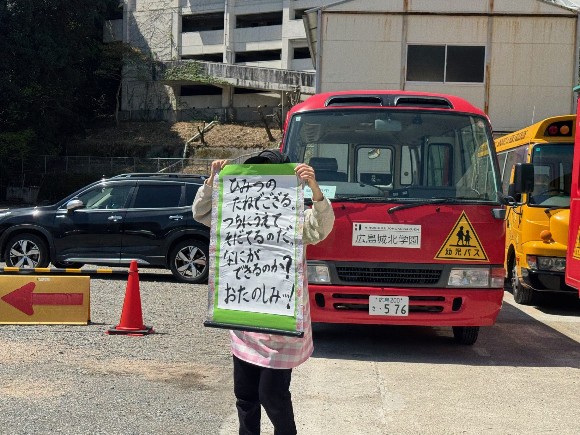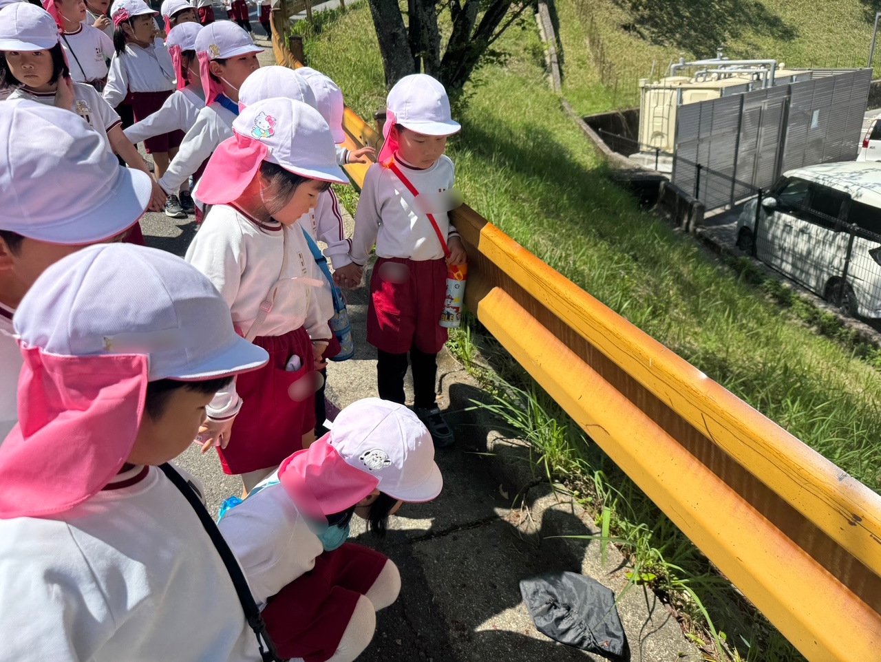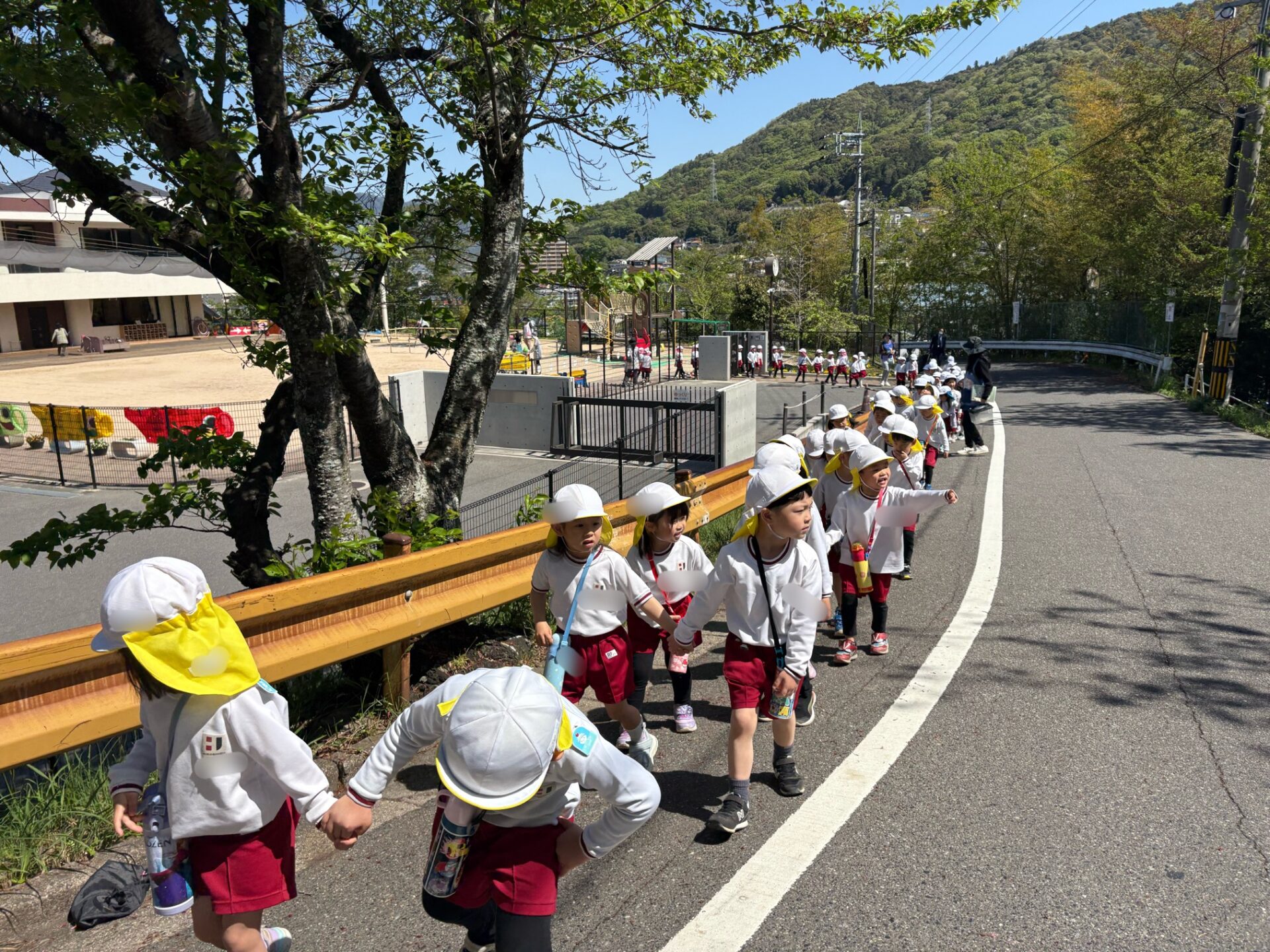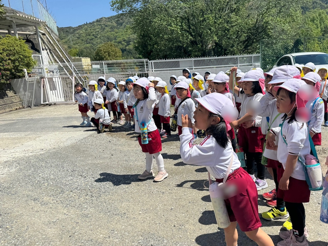 先週の散歩はあいにくの雨で中止となってしまいましたが、今日は気持ちのよいお天気になりました🌞行ってきますの挨拶をすると早速《春見つけビンゴ》を持って第二園庭へ出発です☺