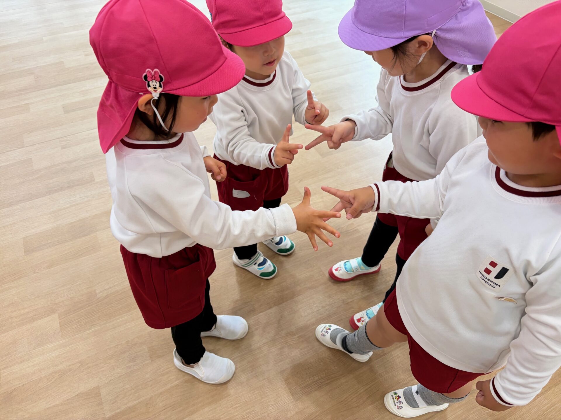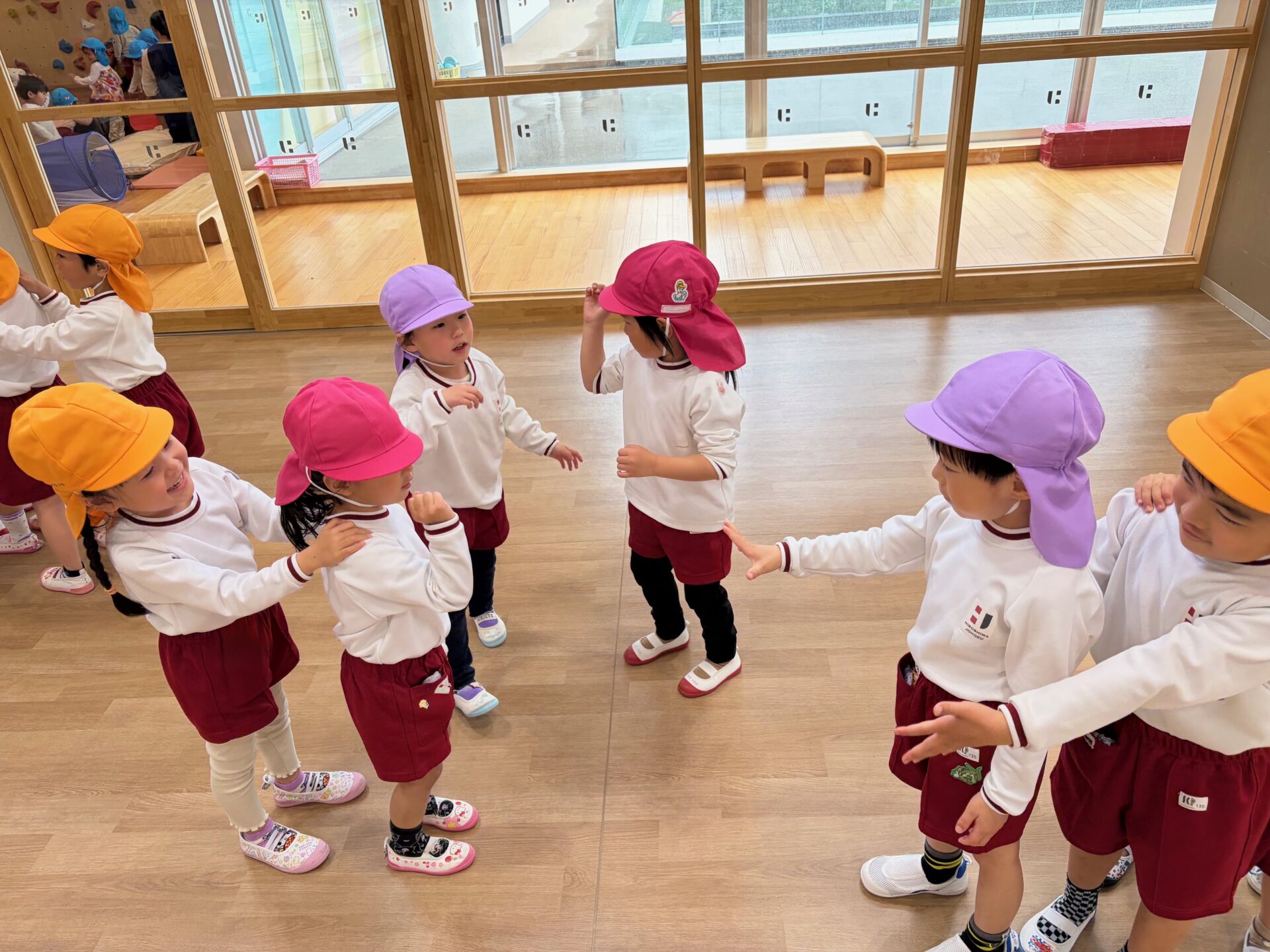 さらに、みんなでじゃんけん列車です!友達と向かい合ってじゃんけんをし、勝ったり負けたりしながら、少しずつルールのある遊びにも親しんでいます。列がだんだん長くなっていく様子に大興奮で、最後まで夢中になって楽しんでいました🎵