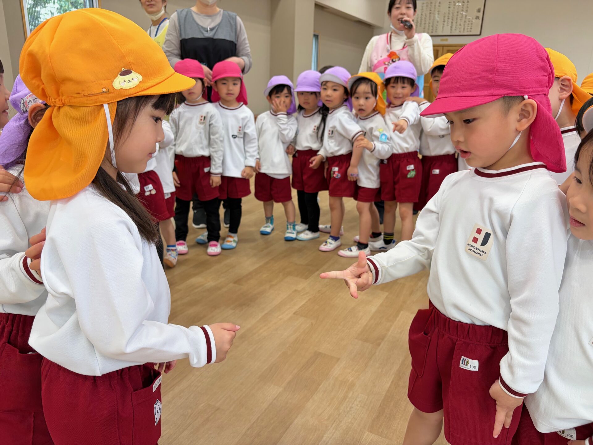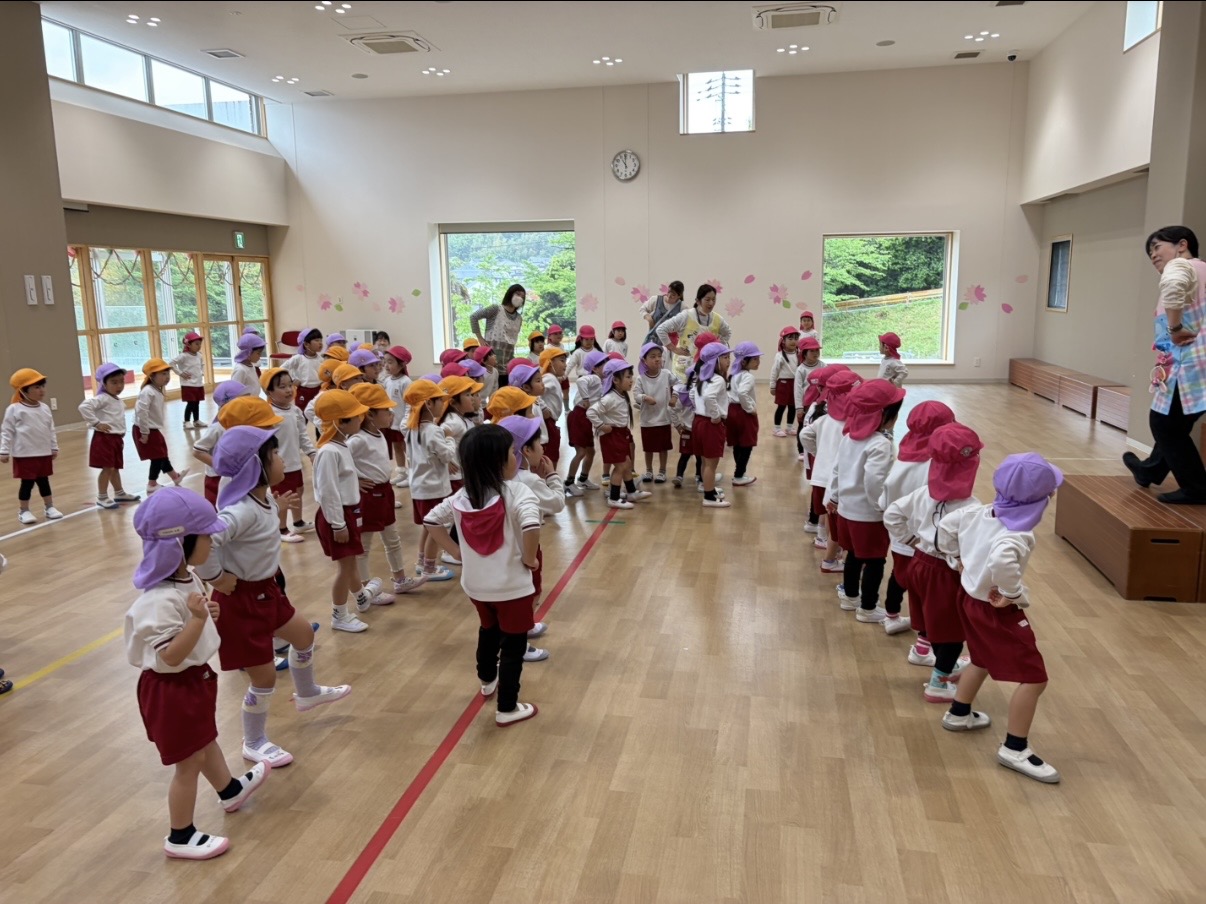 玉入れ大会のあとは、じゃんけんダンスをしました。音楽に合わせて体を動かしながら、楽しくじゃんけんに親しみました!