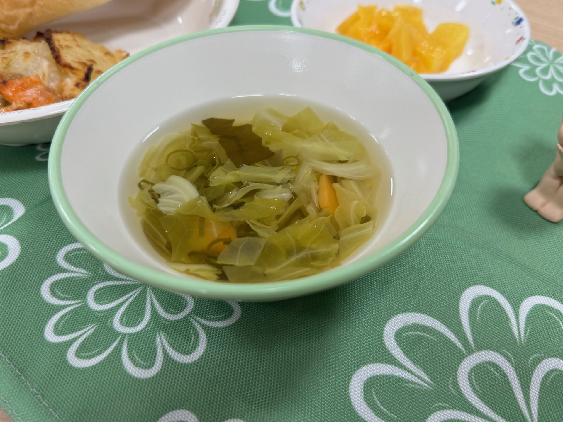 【コッペパン🥖 ポテトの豆乳チーズ焼き🥔 春キャベツスープ 果物】
