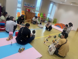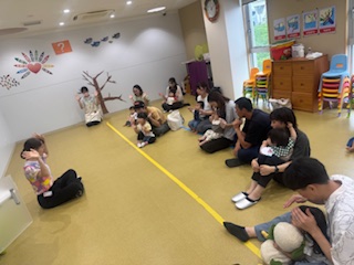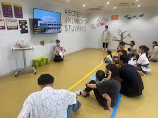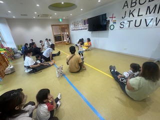 9月のオープンスペースを行いました。今回はEnglishルームで楽しく遊びました。わらべ歌🎵おやゆびねむれ🎵を親子で楽しんだり、『はらぺこあおむし』の大型絵本を読んだりして楽しく過ごしました✨。