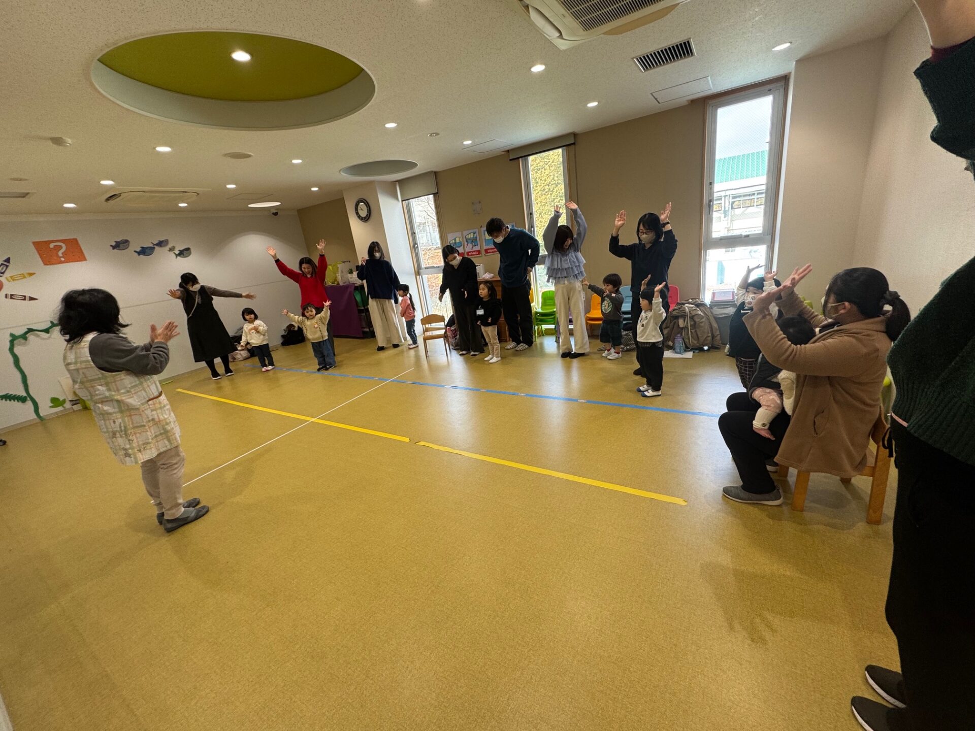 今年度最後のバンビ教室を行いました。朝の歌やお返事など、とても上手にできるようになりましたね💕。わらべ歌をうたったり、大型絵本を見ながらみんなでジャンプしたりして楽しく過ごしました😊。